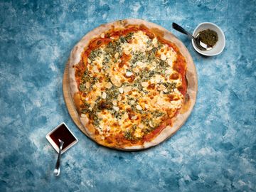 Fermentación de 48 horas - Tamaño estándar mediano - Base roja de tomate italiano y queso mozzarella