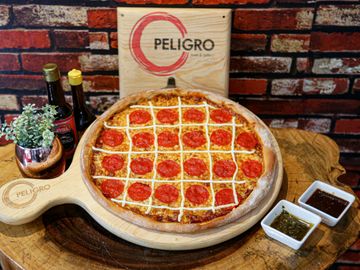 emblemática de PELIGRO, pepperoni y queso philadelphia